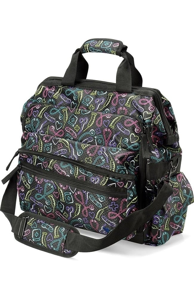 The ultimate must have for any medical professional. Multiple pockets and compartments designed specifically for the tools of your profession. Show you care with these beautiful patterns. Made from heavy duty water-resistant fabric. Patented.